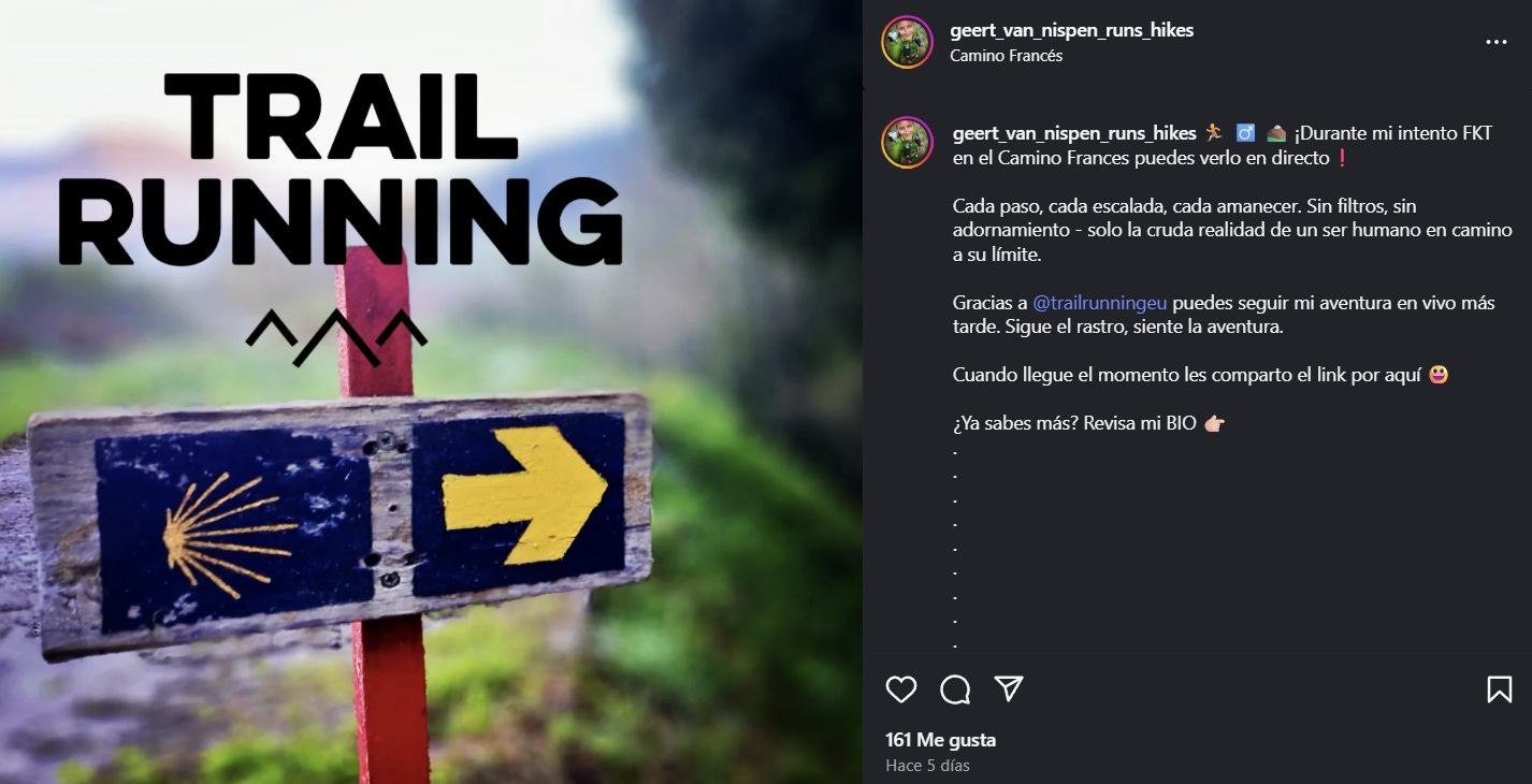 Tras su récord en el Camino del Norte, regresa con una propuesta aún más exigente: recorrer en menos de 8 días la ruta más icónica de Europa. Correrá solo, cargando todo lo necesario, sin asistencia y documentando cada paso con GPS y pruebas fotográficas.