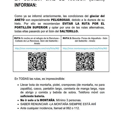 Arrancamos la sección con un aviso que nos dan desde el GREIM si tenemos planificada para estos días la subida al Aneto. Nos sugieren evitar la ruta por el Portillón Superior y optar por pasar por el ibón de Salterillo. Las condiciones del glaciar son muy peligrosas debido a la dureza del hielo. En el siguiente tuit de Montaña Segura nos explican las dos alternativas que tenemos con acceso a las fichas explicativas de cada una.