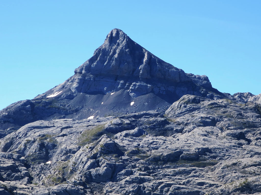 2) Esta montaña es el punto culminante de la zona, dominando como ninguna otra la gran meseta kárstica que se extiende a sus pies.