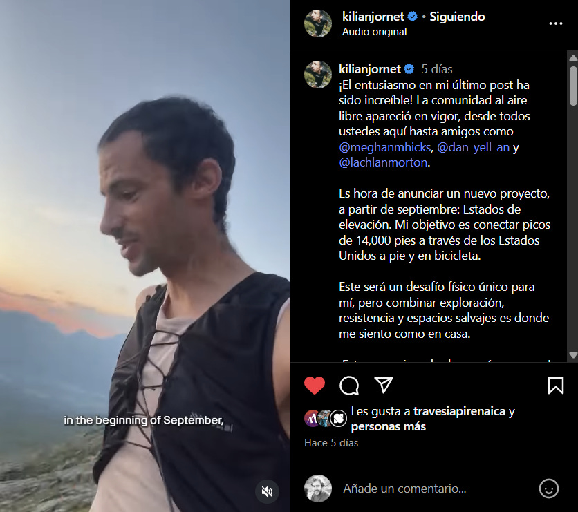 Kilian Jornet vuelve a reinventar la aventura: correrá y pedaleará por los 48 estados de EE. UU. enlazando cumbres de más de 4.267 m (elespanol). Kilian Jornet lanza States of Elevation, un nuevo desafío en EE. UU. donde enlazará a pie y en bici todos los picos de más de 14.000 pies (4.267 m) en los 48 estados continentales (elespanol). Partirá en septiembre desde Longs Peak (Colorado) y recorrerá terrenos técnicos y de gran altitud, sin usar ningún medio motorizado.