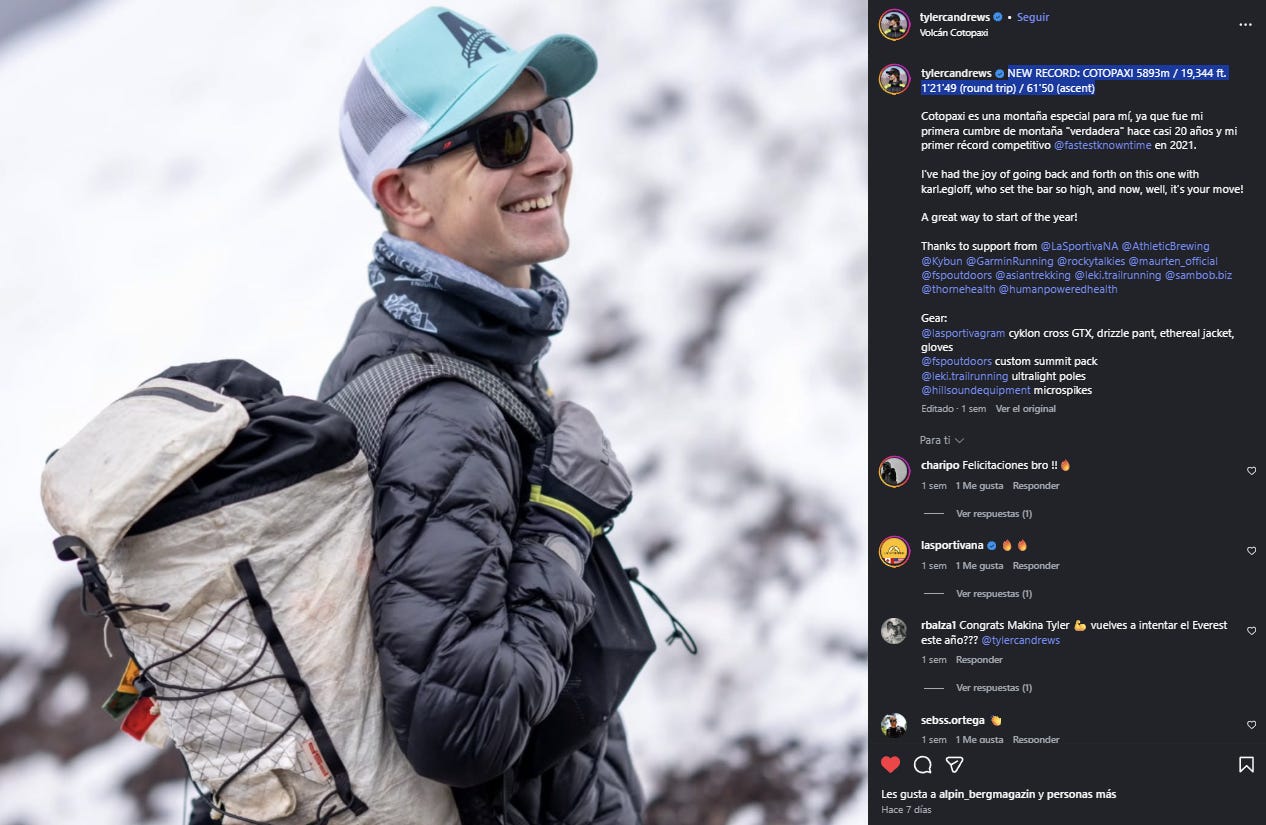 Tyler Andrews rebaja el FKT del Cotopaxi y apunta de nuevo al Everest