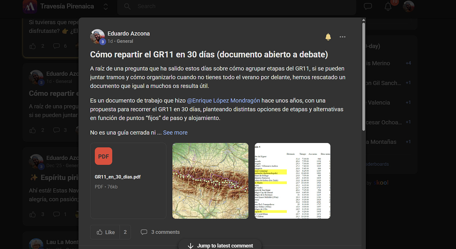Hace unos años trabajamos en un documento interno para repartir el GR11 completo (818 km y más de 42.000 m+ acumulados) en 30 días. No como guía cerrada, sino como base estratégica para quienes no tienen todo el verano por delante. Dentro del Club hemos abierto el documento completo y el debate.