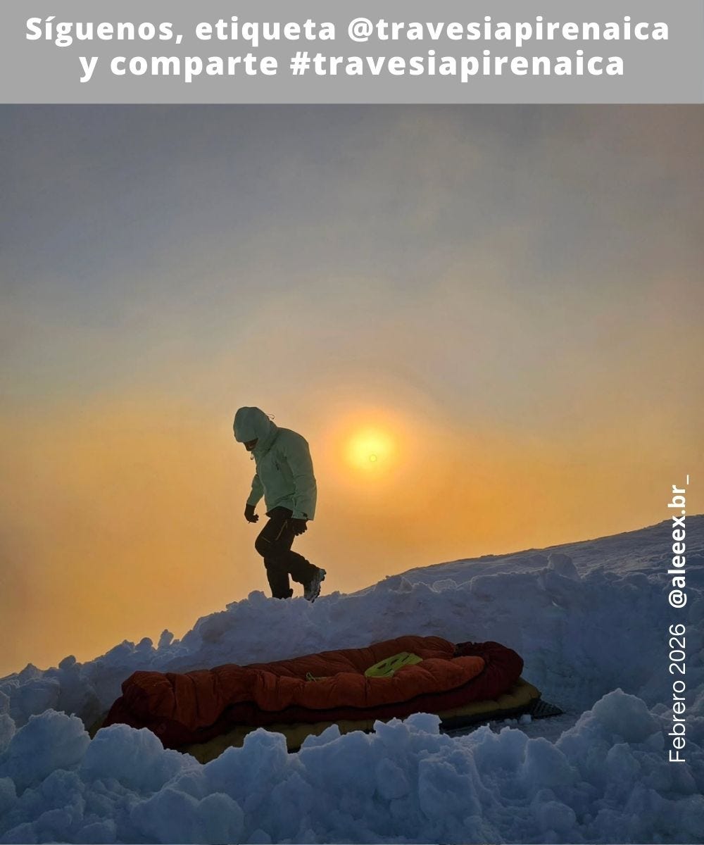 📸 : À L E X @aleeex.br_ (IG) // Bivac en la cima del Taga, popular pico del Ripollés y de Cataluña. 📍Cim del Taga (2.040m) / Febrero 2026 / Etiquétanos @travesiapirenaica //