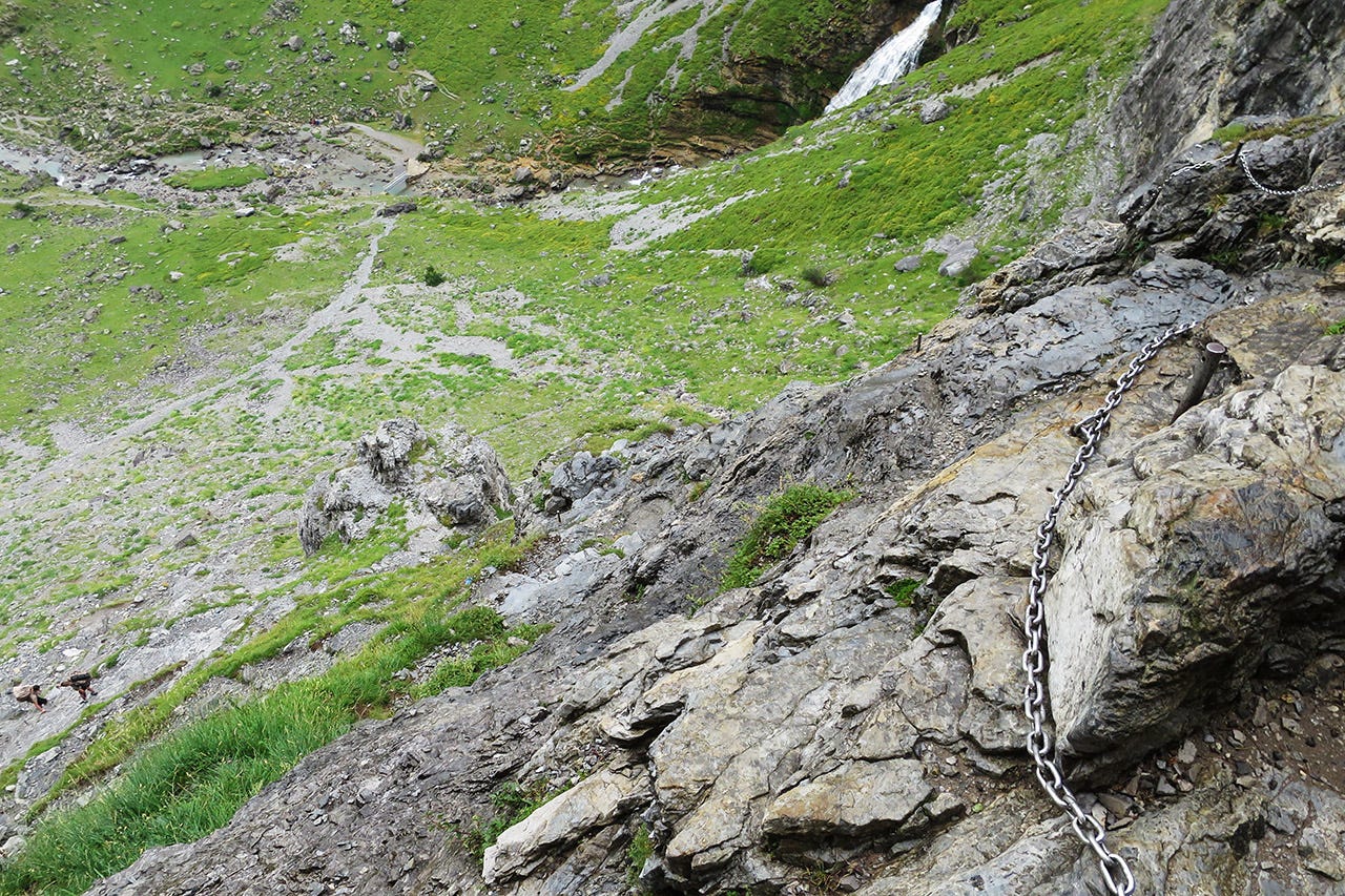 Si recordáis el lugar de la semana pasada, continuando aquella ruta llegábamos en breve a un circo muy conocido por la famosa cascada que cae a su izquierda, y también, porque justo enfrente se encuentra el paso equipado que hoy nos ocupa. ¿Sabéis ya de qué clavijas estamos hablando?