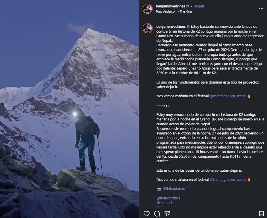 Dos estilos. Alexander Odintsov, Piolet d’Or a su carrera (Desnivel), medio siglo abriendo líneas míticas como el Jannu Norte o el Latok III, y formando a toda una generación de alpinistas rusos. Mención especial para Benjamin Védrines, icono del alpinismo ultrarrápido, récords en K2 y Broad Peak, aperturas técnicas y un enfoque que marca el futuro.